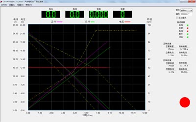1.自動(dòng)高速連續(xù)正反轉(zhuǎn)測(cè)試:在0~20秒內(nèi)連續(xù)加載測(cè)試,從空載到堵轉(zhuǎn)的M=f(I,n)特性曲線,采樣率可達(dá)每秒50~100點(diǎn)。 自動(dòng)上下限超值報(bào)警:對(duì)預(yù)先設(shè)定的電流I上限和轉(zhuǎn)速n上下限邊界線,自動(dòng)判別進(jìn)行超值不合格報(bào)警。